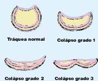 Un animal normal tiene una tráquea de sección prácticamente circular. Tres cuartas partes de la tráquea están constituidas por un tejido cartilaginoso rígido, mientras que la porción dorsal está formada por una fina membrana (fotografía 4; Sección transversal de una tráquea normal y diversos grados de colapso tráqueal).